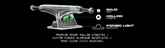 - Construction: Thunder Light – forged baseplate and hollow kingpin for reduced weight